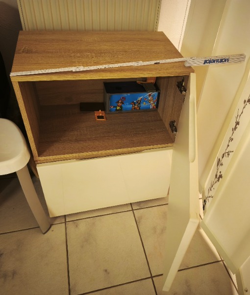 Im Hochschrank vefonden sich zwei kleine Glaselemente.