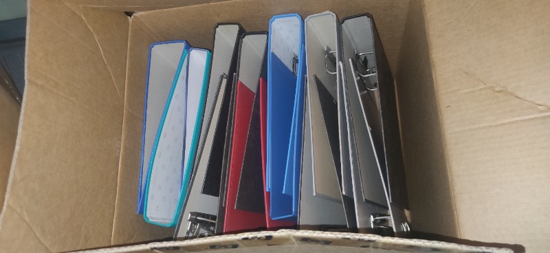 Ich tausche 1 Kiste mit Ordnern (breit + schmal) für Papiere etc in unterschiedlichen Farben. Die Ordner sind bereits benutzt worden, sind aber noch gut genug zur Weiterverwendung.Bei Interesse bitte melden.