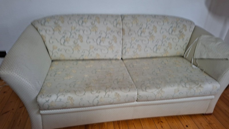 Im sehr guten Zustand. Zum schlafen ausziehen mit Lattenrost und Staufläche. 1 Sessel passent. Hausrat / Möbel Online seit 15.12.2025