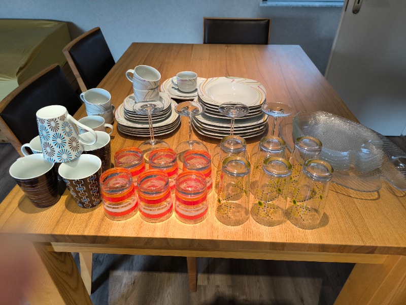 Ess- und Kaffeegeschirr, Gläser, 4 Sektschalen (auch für Dessert geeignet), Salatplatte in Fischform mit 6 passenden kleineren SchalenNur Selbstabholung Hausrat / Möbel Online seit 15.12.2025